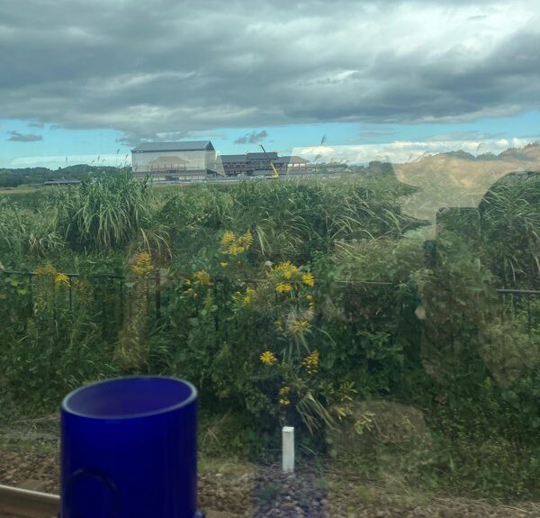 とってもわかりづらいですが…(撮り方の問題?草がボーボーすぎる?曇天だから?しかも工事中でクレーンもいる)