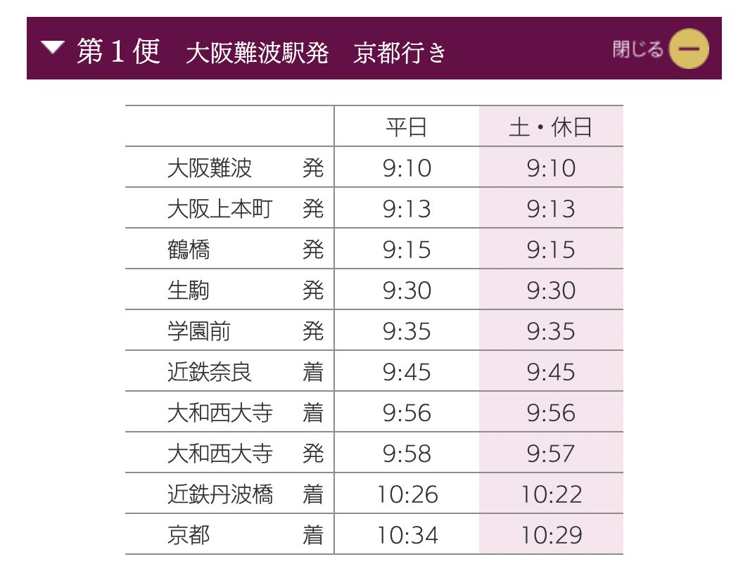 一番乗車時間が長い「難波〜京都」がおすすめ