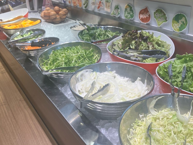モーニングはビュッフェ形式で、種類豊富なサラダバー、洋食から和食まで好きなものを好きなだけ選べます。