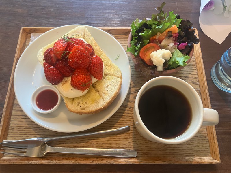 冬季限定のいちごトースト(サラダとドリンク付き)