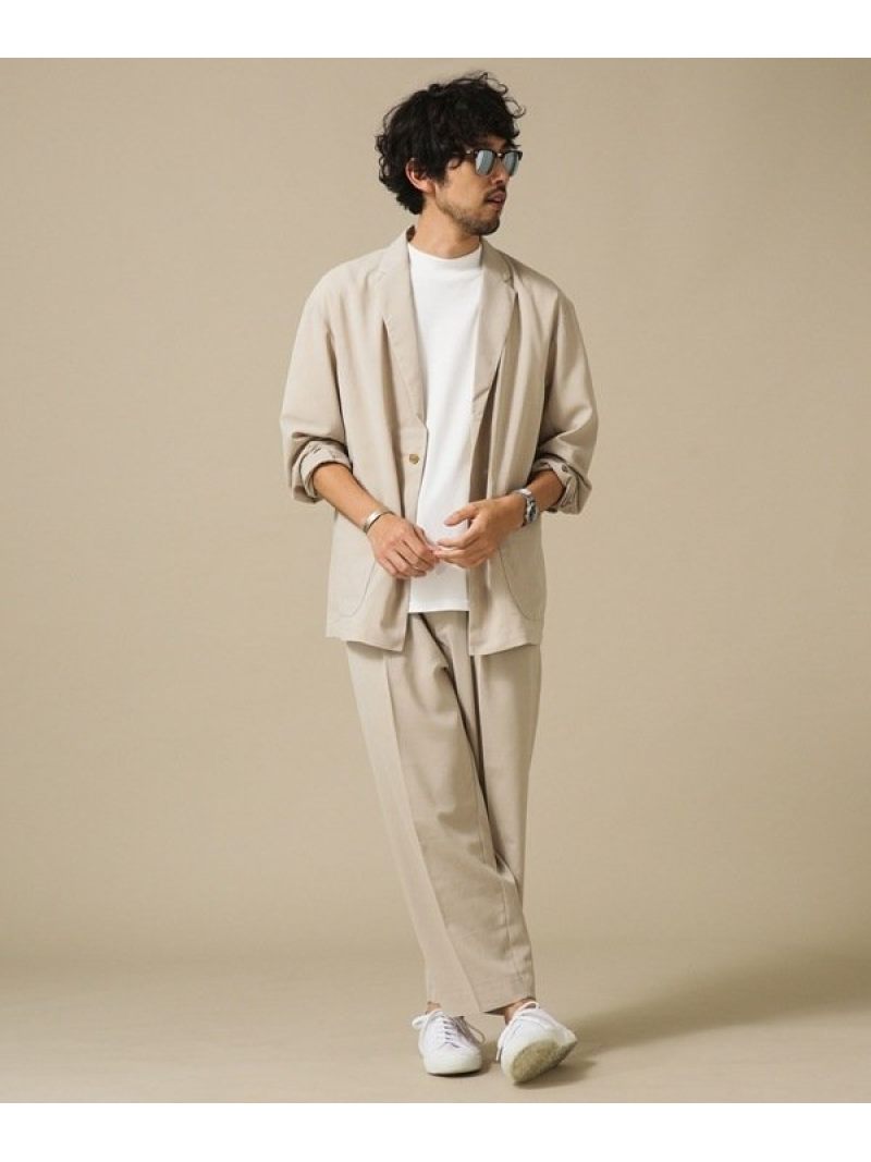 春ならベージュなどの明るい色味のセットアップが似合いそうです。