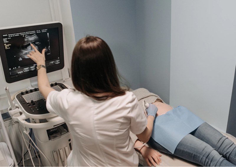 胸部に温かいジェル?を塗られ、エコー検査が始まります。