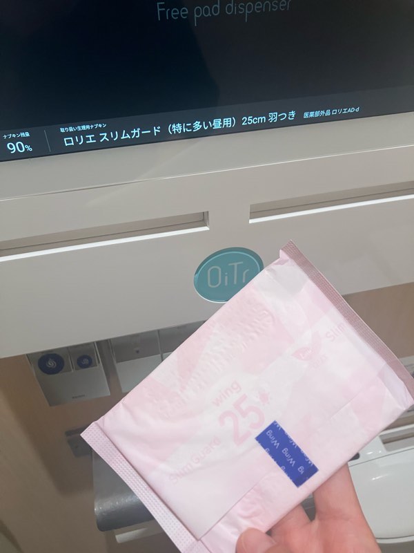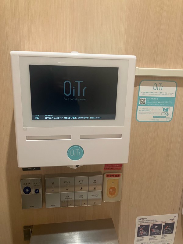 OiTr(オイテル)とは商業施設、オフィス、学校、公共施設などの個室トイレに生理用ナプキンを常備し提供するサービス、とのこと。