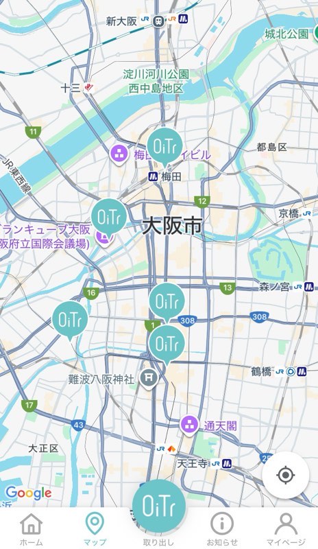 アプリ内のマップでオイテル設置場所が一目瞭然でわかります。