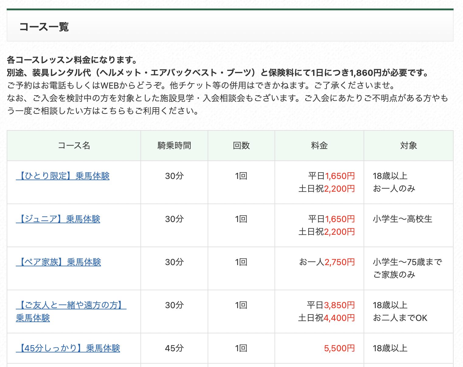 コースは色々ありますが、私は一番上の【ひとり限定】乗馬体験を選びました。
